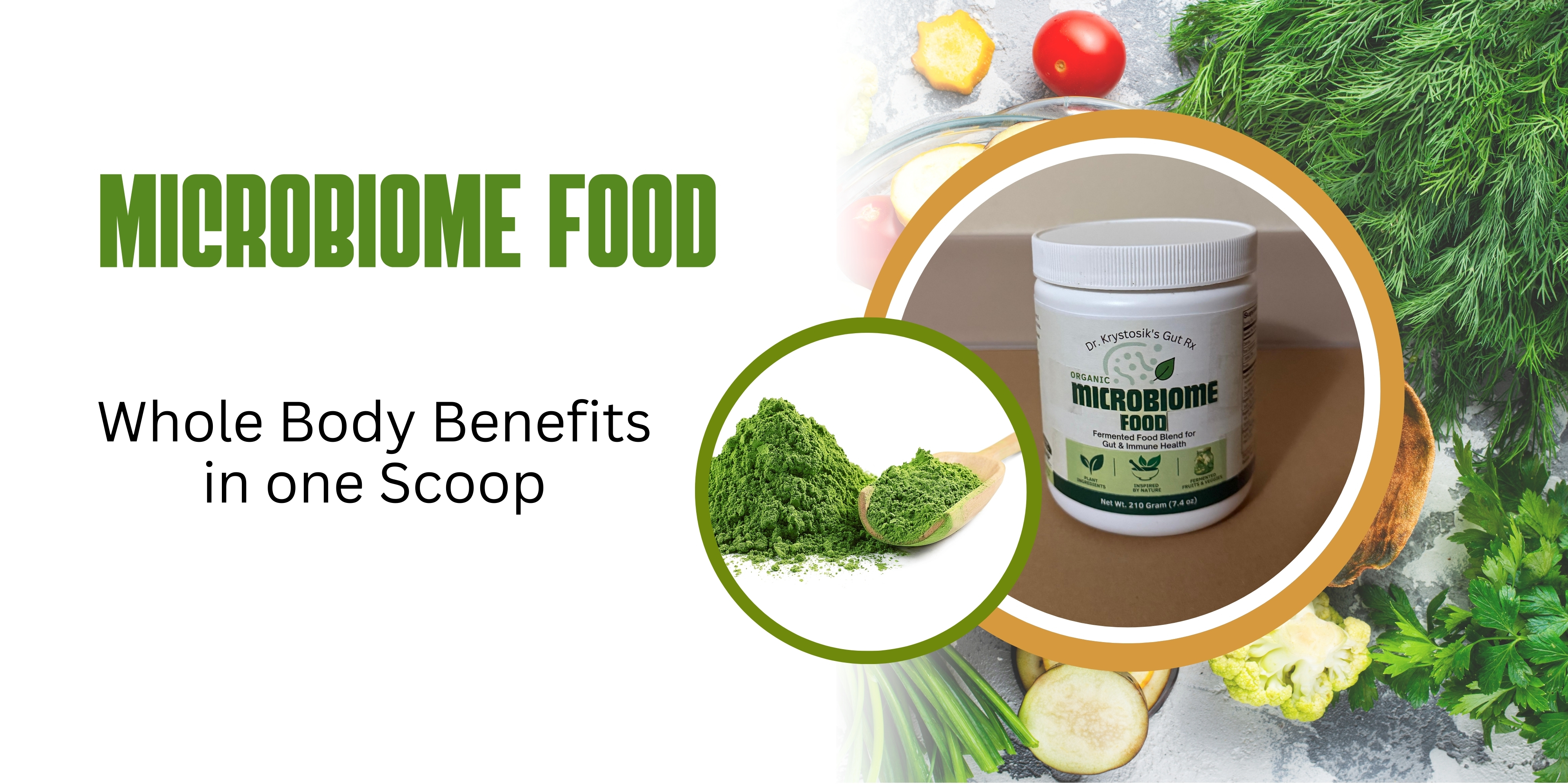MICROBIOME FOOD was formulated by Dr. Krystosik, northeast Ohio’s leading gut health expert since 1986. He’s the author of seven evidence-based natural medicine books and longtime radio and podcast host. Dr. Krystosik integrates 40 years of clinical knowledge and experience into a proven, gut-restoring formula trusted by people worldwide. If you want optimal gut health and a strong immune system to resist illness, MICROBIOME FOOD is just what the doctor ordered.